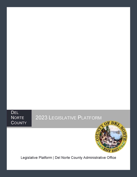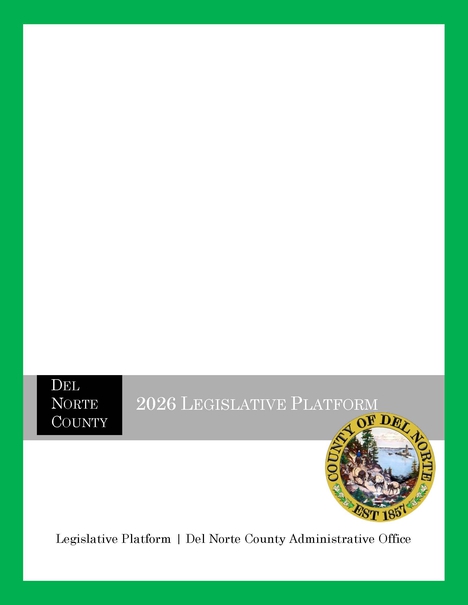 Del Norte County's State and Federal Legislative Platform outlines the policy and budget priorities of the Board of Supervisors and establishes the basis for advocacy efforts at the State and Federal levels of the Executive and Legislative branches regarding legislation and regulation. It also provides general direction and authorization to the County Administrative Office and all other County departments, the County's legislative advocates and state and federal delegation members, as well as the public on positions of support or opposition to key legislative, fiscal, and policy initiatives that impact the way the County does its business.